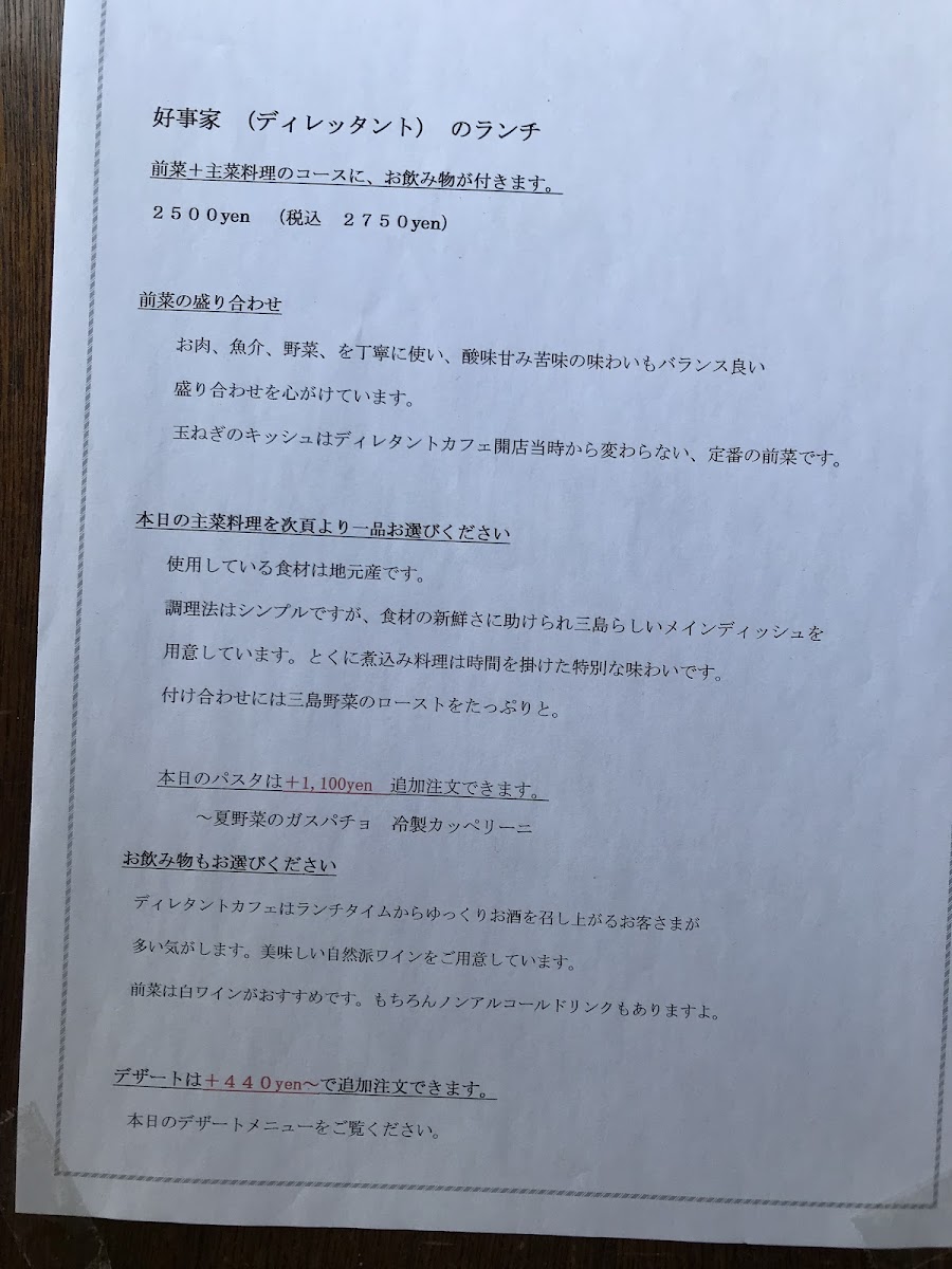 Introducing dilettante cafe, a hidden gem nestled by the riverside in Mishima, Shizuoka. This charming café offers a delightful culinary experience coupled with breathtaking views. Guests are treated to a menu that features a range of delicious dishes, carefully crafted with fresh ingredients. The warm and welcoming owners are always on hand to guide you through the selections, ensuring a personal touch that elevates your dining experience.